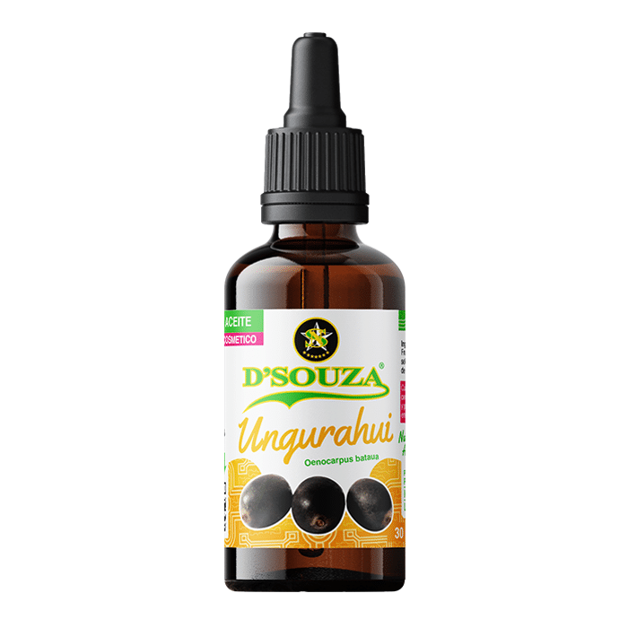 El aceite de Ungurahui (Oenocarpus bataua) proviene de una palmera amazónica. Es rico en omega 9, y vitamina E lo que ayuda a mantener el brillo y color natural del cabello, fortalece los folículos capilares. Además, contiene vitamina E, un poderoso antioxidante, previene la resequedad, nutre, tonifica la piel, la regeneran y suaviza.